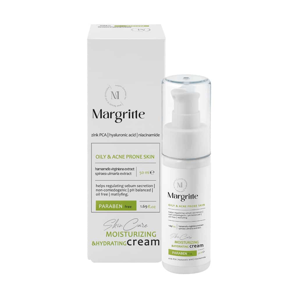 کرم مرطوب کننده و آبرسان قوی پوست چرب و مستعد جوش مارگریت، محصولی سبک، فاقد چربی و با جذب سریع است که علاوه بر رطوبت رسانی ویژگی کنترل چربی و جلوگیری از ایجاد آکنه نیز دارد. این محصوی ظاهر مات دارد و PH پوست را متعادل نگه میدارد.